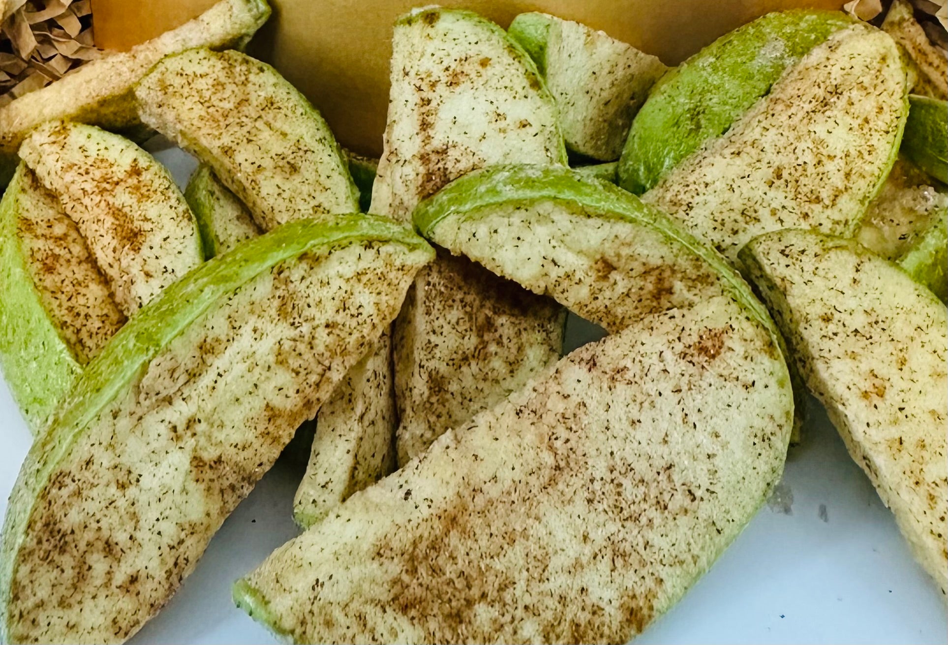 In the mood for something crunchy? Sweet? A little sour? This is the snack for you! These organic green apples are dusted with cinnamon and a touch of brown sugar and then freeze dried to crunchy perfection!